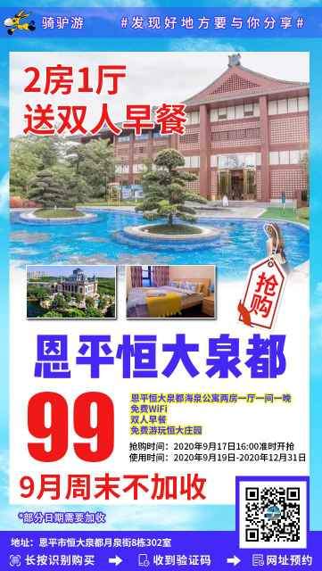 ?今天16:00开抢预告 【恩平】送双人早餐,99元抢恒大泉都【两房一厅】9月周末不加收,可住4大1小,人均19.8元! 发自小木虫Android客户端 |