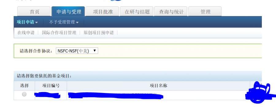 写在前面:此法可能仅适用无已批准项目的申请者。连续两年我通过此法查询,得以验证,但今年漏洞不知道是否还在。往年经验,仅供参考。 在线申请——新增项目申请——国际(地区)合作与交流项目——合作交流——随便选择一个协议。如果项目获得资助,此处会出来跳出你的项目。 自然基金.JPG |