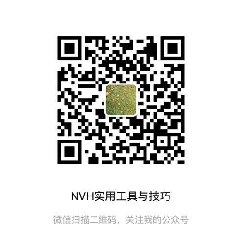 本人创建了一个微信公众号:NVH实用工具与技巧,主要分享一些车辆NVH开发过程中一些常用工具的使用方法和技巧。欢迎大家扫码关注。