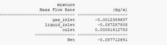 各位大佬,两个入口一个进气体一个进液体,气体通过图中小孔和液体混合然后从出口流出,气体压力略高于液体,但是仿真过程中液体入口会出现回流,而且流入流出的流量相差很大,该如何设置条件,或者模型有没有什么问题。 发自小木虫Android客户端 |
