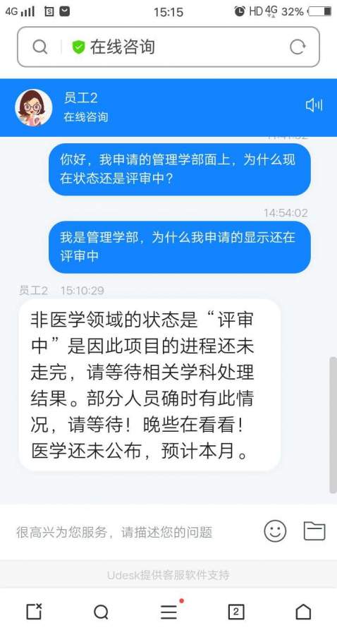 请教大家哦,我申报的管理学部面上项目,今天进系统查询,现在状态还是“评审中”。 是的,我知道希望肯定很小了,但是每中的同志们你们的状态没变吗? 在线咨询了基金委 客服,回答见附件,大家有遇到这个情况吗?最后结局如何? 微信图片_20200918163204.jpg |