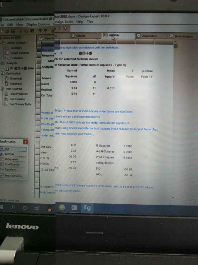 PB实验求助,用designexpert设计好实验并得到结果,填好表后,在ANOVA这里没有数据