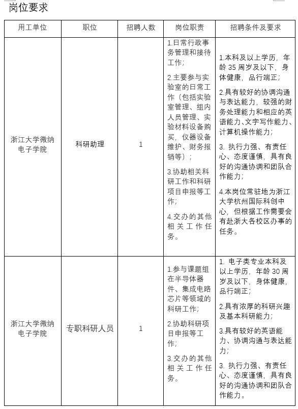 浙江大学杭州国际科创中心 诚聘科研助理及专职科研人员