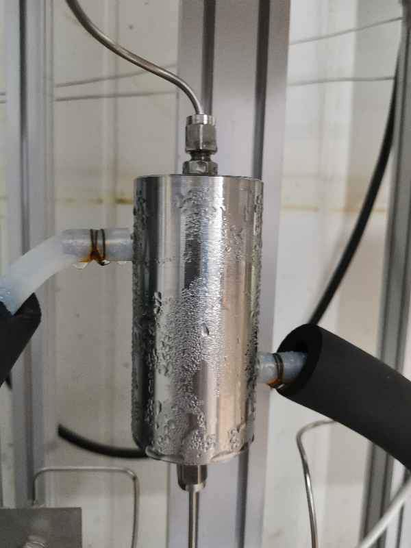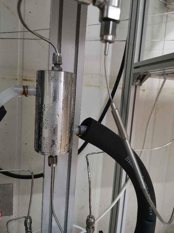 用0℃循环水冷凝,大概这个样子,我用乙醇冲过,没有东西冲出来,而且感觉挺通畅