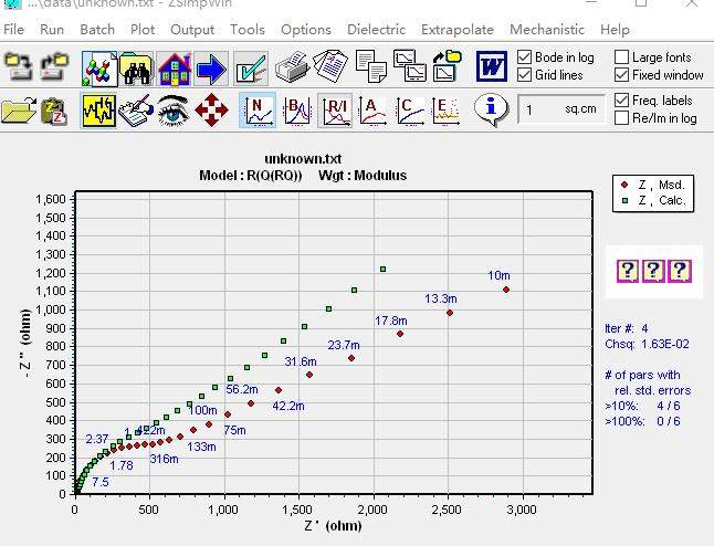 Zahner电化学工作站阻抗谱拟合问题