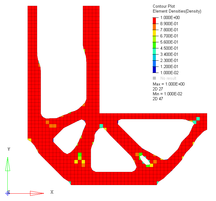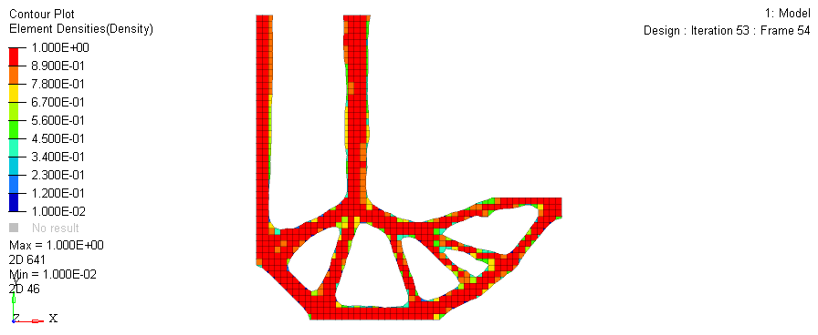 Optistruct是一款非常优秀的商业有限元求解器、优化求解器,功能强大到炸裂,使用起来也很方便。但偶尔用起来也有一点点小麻烦,初学者经常会碰到的问题就是不知道怎么使用Optistruct进行多目标优化或应力优化这种涉及多个响应的优化。Optistruct中的响应是指要作为目标函数或约束函数的结构的性能,比如质量、体积、体积分数、应力、位移等等,其中应力和位移这种响应属于局部响应,即结构中有很多个这种响应,某点的位移或应力不能代表结构的整体性能。以应力优化为例,假如我们想要进行应力最小优化,我们实际上是要使结构中的最大应力最小,但是值得注意的是,优化过程中,具有最大应力的单元一直会变,因此不可能使某个应力值最小,而另外一方面,optistruct也只允许有一个目标函数,怎么办呢? 通过查询各类资料,本人摸索出一个行之有效的方法,概述如下: 1. 创建一个公式,应力优化经常使用p范数凝聚所有的应力值,结构中有多少个单元,公式中即有多少个未知数 2. 创建NEL个应力响应,NEL为结构中的单元个数 3. 创建一个总的响应,类型选择为:function,勾选第一步创建的公式,然后不要着急create,先点击edit,勾选response,在数目中输入单元个数,然后挨个在弹出的NEL个框中,填入一个个响应 4. 在目标函数中,选择第三步创建的总响应作为目标函数。 假如这么干的话,难点在于第二步和第三步,因为我们要创建NEL个应力响应,每个响应对应一个单元。第三步则要勾选一个个响应,这些响应要和公式中的未知数一一对应,NEL一般很大,手动创建太难了,为此我们很自然想到使用脚本自动创建这些数据,只要了解Optistruct的语言习惯,自动创建不是难题,本人在研究时,首先创建了基本的优化模型,并验证可运行,然后使用Python脚本自动完成了1-3步。对于下面的经典L型梁 其中有1600个单元,手动创建很不现实,部分响应和公式如下图所示 使用本人单独开发的小脚本,很方便完成这部分内容,然后将它们粘贴到之前创建的简单优化模型中即可。 优化过程和优化后的效果如下图所示: 拓扑优化后的等值图如下图,可见应力集中的部位基本被消除。本人使用的p范数为6,大家可以尝试其它数值得到更优异的解: 而柔度最小化优化的结果是下面这样的,显然和应力最小拓扑优化是不一样的,因为拐角还是直的,没有去除应力集中。 创建公式需要注意格式,感兴趣的同学可以在以下链接内 https://www.jishulink.com/conten ... 1-8566-244e8522b4ac 尝试下载附件,附件包括脚本和有效的应力优化模型,谢谢。 同样使用本文的方法还可以求解多目标优化和多约束优化等等,不仅仅是拓扑优化,尺寸优化,形状优化也能解决,因为这三种优化类型都需要响应。 |