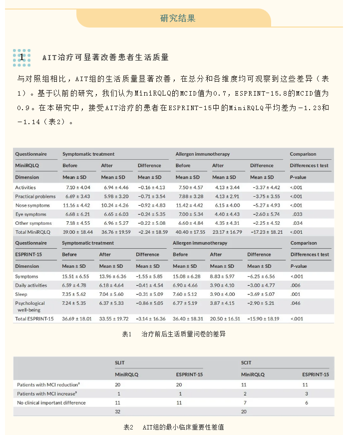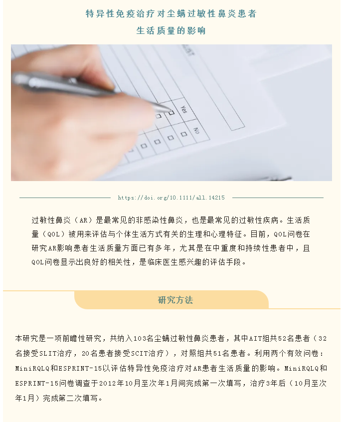 特异性免疫治疗对尘螨过敏性鼻炎患者生活质量的影响