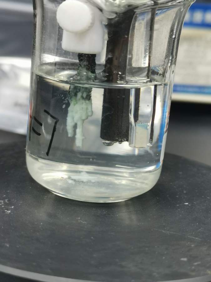 我按文献配了1.0M的PBS溶液,作为中性条件,在测试析氧的时候发现,电极上有白色物质析出?这是什么原因造成的呢?我的参比是饱和甘汞,对电极是碳棒
