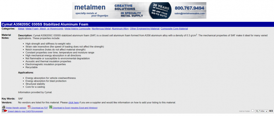 给伙伴们推荐一个可以获取各种材料参数的网站 https://www.matweb.com/index.aspx, 可以收到到该种材料的描述,物理参数,力学参数,大家可以注册可以获取。 1.png 2.png 3.png 4.png |