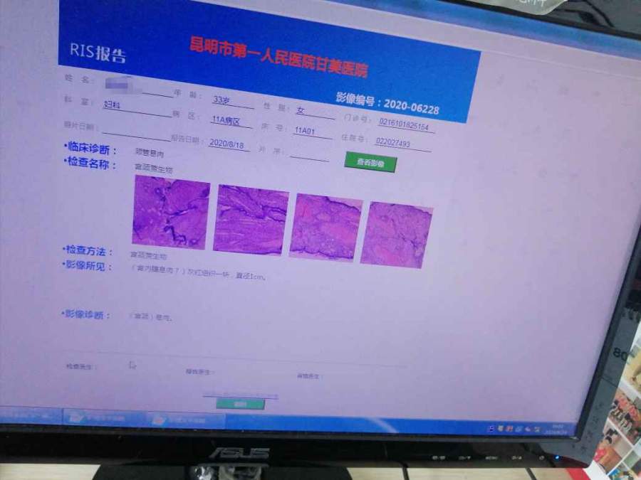我今年电子镜发现一个息肉和两个囊肿,很长,应该有好多年了,一直不好。做了病理切片,请帮我看一下图中异常细胞是癌细胞吗?因为我手术后还是一直小腹以下经常疼,坐着都痛(子G后位)。