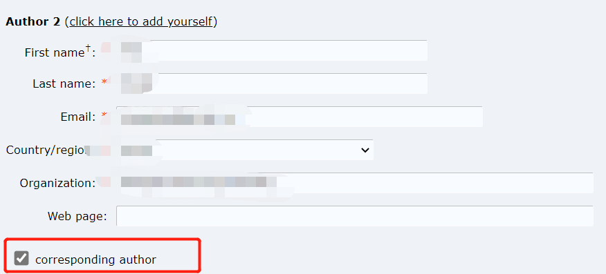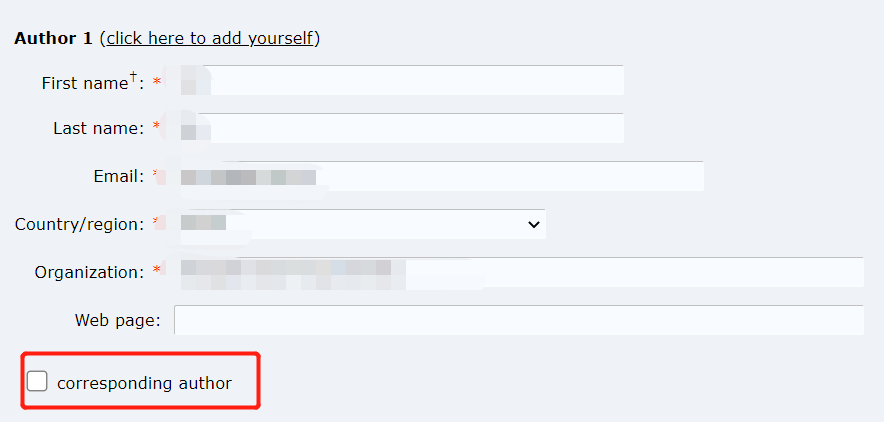 【新人求助】关于easychair投稿时作者填写和通讯作者的填写
