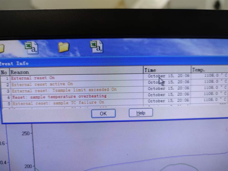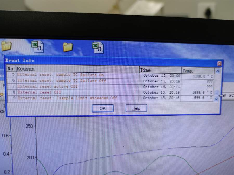 具体问题如下:我们一般是测到900或者1000摄氏度,10K/min。但是在测试到大概五六百度的时候,就会突然升到1000多度,然后仪器就自己停止了。除此之外,TG曲线有时候还会一直上升。(我们一般是探究氧化物结晶温度,所以一般应该是下降的)具体情况如下图