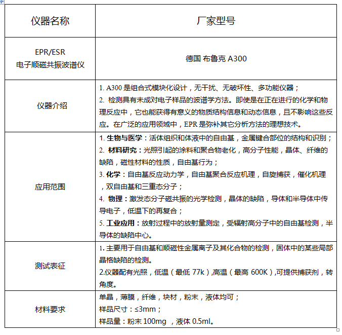 专业ESR/EPR(电子顺磁共振波谱仪)测试:自由基(超氧、羟基、单线态氧、硫酸根),空位缺陷等测试;可提供各种光源、捕获剂、高低温(温度范围77-600K),可提供定量计算 。