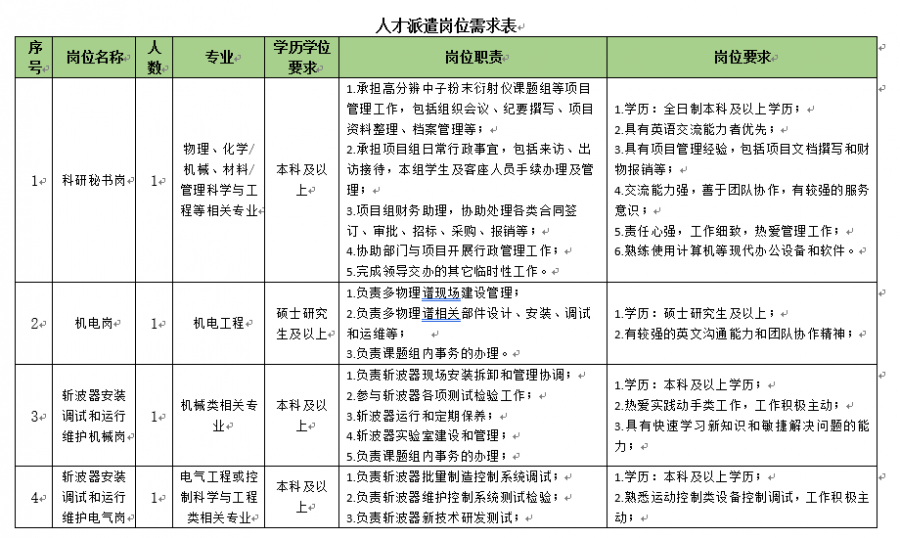 中科院高能所散裂中子源科学中心人才派遣岗位招聘启事