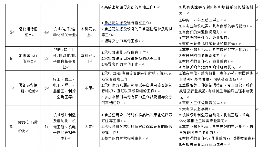 中国散裂中子源是国家“十一五”期间重点建设的十二大科学装置之首,为我国材料科学技术、物理、化学化工、生命科学、资源环境和新能源等提供一个先进、功能强大的科研平台,成为继英国散裂中子源、美国散裂中子源和日本散裂中子源之后,全世界第四台脉冲型散裂中子源。项目落户广东省东莞市松山湖科学城,总投资约23亿元。 散裂中子源科学中心为中国科学院高能物理研究所的直属分支机构,是中国散裂中子源项目的地方事业法人机构,致力为科技、国防、经济和粤港澳大湾区、广深科技创新走廊建设和地方产业转型升级提供强大的技术支持。 根据工作需要,散裂中子源科学中心现公开招聘人才派遣岗位20名左右。 岗位性质:非在编(人才派遣) 薪酬待遇: 1、提供具有竞争力的薪资,缴纳五险一金(东莞市社保金卡,公积金缴纳比例12%); 2、优良的工作环境,专业的岗位培训。 工作地点:广东省东莞市 应聘要求: 1、应聘者面试时须提供以下材料: (1)个人简历(包括详细个人信息、教育经历等); (2)学历学位证书、身份证、学习成绩单等复印件; 2、 有意应聘者请登陆高能所人才库(cv.ihep.ac.cn)选择“中国散裂中子源工程”投递简历或将简历发至邮箱fengmn@ihep.ac.cn(注:请写明应聘岗位)。 3、 面试时间:另行通知 联系方式: 联 系 人:冯老师 联系电话:0769-89156323 邮 箱:fengmn@ihep.ac.cn 岗位需求表见附件。 岗位需求表1.png 岗位需求表2.png [ 来自版块群 广东 ] |