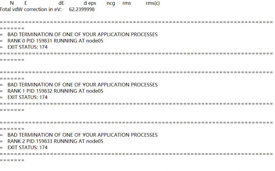 vasp出现 BAD TEMINATION OF ONE OF YOUR APPLICATION PROCESS 怎么解决 已有1人参与