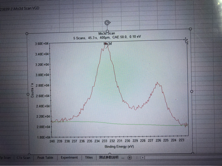 测钼酸镍的硫化物xps发现钼只有在232eV有个出峰,S在226eV有个峰,看文献钼都有好几个峰为啥我的只有一个,求大佬指点