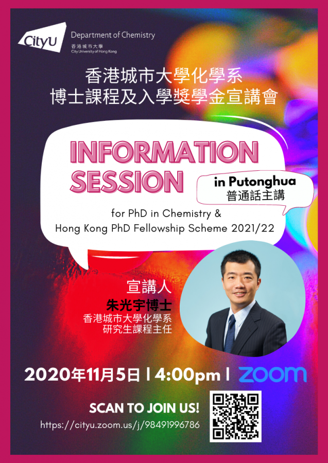 香港城市大学化学系即日开始招收2021年秋季入学博士生。申请成功者全期四年可获每月港币17,510奖学金,特别优秀者更可获香港政府博士奖学金(hkpfs), 每月获得最少港币26,600元。 欢迎化学、材料科学、工程、生化、环境、能源以及相关专业的硕士或学士学生/毕业生申请,如有任何疑问欢迎发邮件chemphd@cityu.edu.hk进行咨询。 2020年12月1日香港时间中午12时截止申请。 ![]() 关于化学系 香港城市大学化学系是香港城市大学理学院的三个基础学系之一,现有教职员35人,其中包括2名欧洲科学院院士以及3名科睿唯安高引科学家。化学系与海洋污染国家重点实验室、超金剛石及先进薄膜研究中心有緊密联系,并与中国科技大学、中国科学院理化技术研究所建立了联合研究的中心或实验室。 师资力量:https://www.cityu.edu.hk/chem/academic.html 科睿唯安高引科学家:任广禹教授 (prof. alex k.-y. jen), ?埢淌冢╬rof. hua zhang), 范战西博士(dr. zhanxi fan) 申请流程 hkpfs申请人请先到港府研资局系统(https://cerg1.ugc.edu.hk/hkpfs/apply.html#initial)提交初步申请、索取申请号,再到城市大学研究生院申请系统( https://www.cityu.edu.hk/pg/rese ... teps-and-procedures)递交正式申请 不打算申请hkpfs者, 只须直接到城市大学申请系统提交申请 以下申请材料必须齐备,否则申请不予受理,请注意及时准备: 本科最后/最近期的成绩单(中文版) 本科最后/最近期的成绩单(英文版) 本科学位证书(中文版)*** 本科学位证书(英文版) 本科毕业证书(中文版) 本科毕业证书(英文版) 硕士最后/最近期的成绩单(中文版)(如适用) 硕士最后/最近期的成绩单(英文版)(如适用) 硕士学位证书(中文版)*** 硕士学位证书(英文版) 硕士毕业证书(中文版) 硕士毕业证书(英文版) 申请日期前两年内的雅思(ielts, 最低6.5)或托福(toefl, 最低79)成绩单 sci期刊出版论文首页(如有) 其他奖项、奖学金证书(如有) 密函推荐书共2份 (指定表格, 不接受一般推荐信) ***如为大四/毕业班学生,没有学位证书及毕业证书,请提交中、英文版在学证明,说明预计毕业日期及现时成绩(gpa/百分制) ![]() ![]() 为使各位申请人更了解城市大学化学系的博士课程、入学招生和奖学金资讯, 我们将于11月5日(星期四)下午举办线上宣讲会, 由研究生课程主任朱光宇博士主讲, 欢迎各位参加, 直接交流 ![]() :like11月5日(四) 4:00pm https://cityu.zoom.us/j/98491996786 城大化学系博士課程线上宣讲会 [ Last edited by CityUChem on 2020-11-1 at 12:43 ] |
