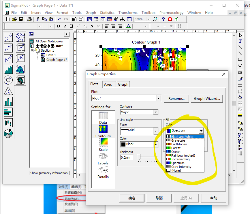 sigmaplot做含水量等值图时如何设置颜色和标签背景色