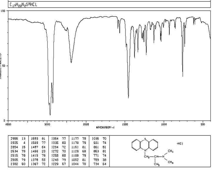 请教盐酸异丙嗪各红外峰的归属,有点分析不清楚了!求教高手指点,多谢多谢!