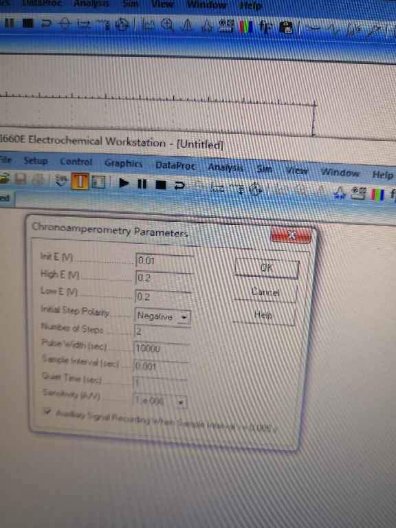本人科研小白,想测聚合物电解质的离子迁移数。从文献来看是交流阻抗法和直流极化法相结合。对于直流极化法,我用的是辰华电化学工作站里的Chronocoulometry,文献选用的极化电压是10~50mv。这里面还有init E(V),HighE(V),LowE(V).我在我不知道怎么设置参数,有大神愿意告诉我么。在此感谢 发自小木虫Android客户端 |