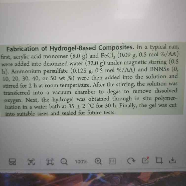 本人想合成聚丙烯酸,查阅文献是用丙烯酸单体和过硫酸铵加三氯化铁在去离子水中加热到35°反应30小时得到的,目前尝试了利用丙烯酸单体加过硫酸铵却合成不出来,丙烯酸是刚买的,只打开过2次,应该没有变质,合成出来的是一种淡黄色的很稀的液体,没有出现水凝胶,想请问下是怎么回事? 发自小木虫Android客户端 |