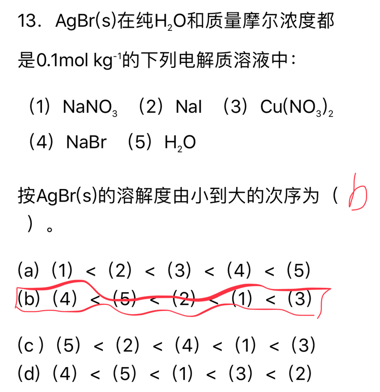图一的题目我只能通过同离子效应判断(4)应该是最小的,却不知道其他该如何确定 图二的题目是否要考虑h+呢,如果考虑了应该是两者都不溶解吗? 求解惑,十分感谢! 发自小木虫IOS客户端 |