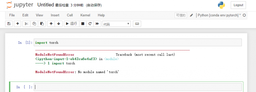 jupyter notebook错误提示ModuleNotFoundError: No module named 'torch'已有1人参与