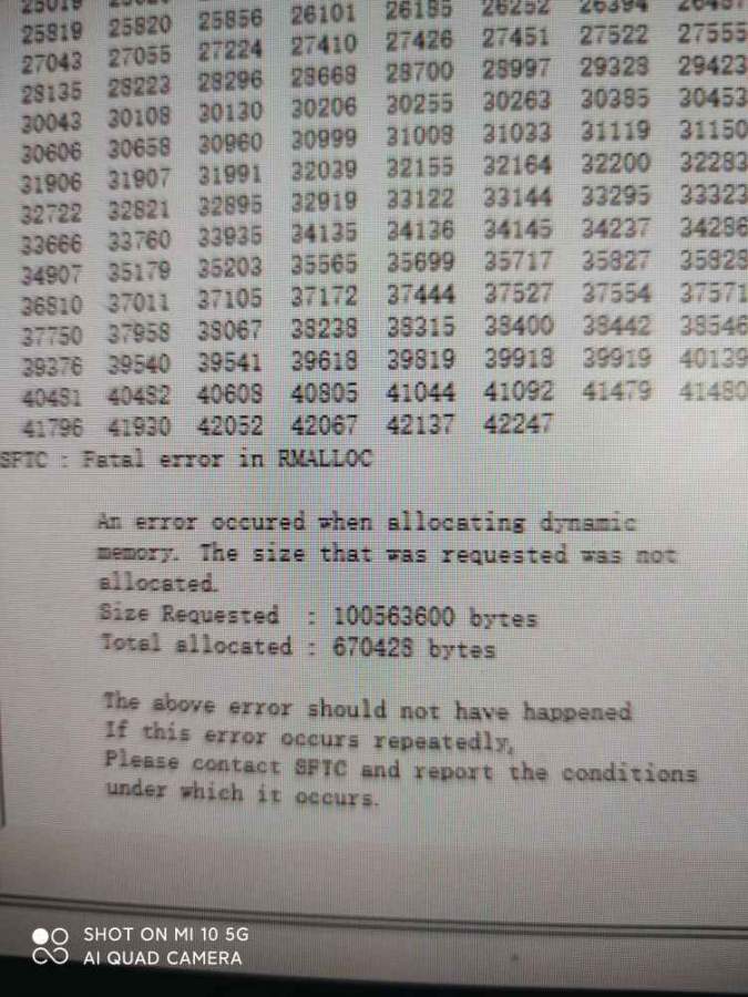 工件体积500w,划分网格30w,网格比例5 最小尺寸1.8mm 总步数300,运行20步左右突然停止,提示:an error occurred when allocating dynamic memory.this size that was requested was not allocated.请问大家遇到过这种问题吗?有什么解决方法? 发自小木虫Android客户端 |