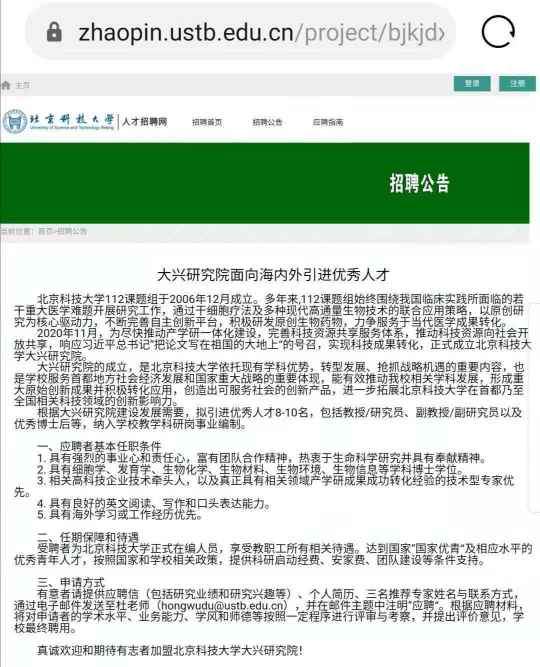 北京科技大学大兴研究院诚聘优秀人才!!!!