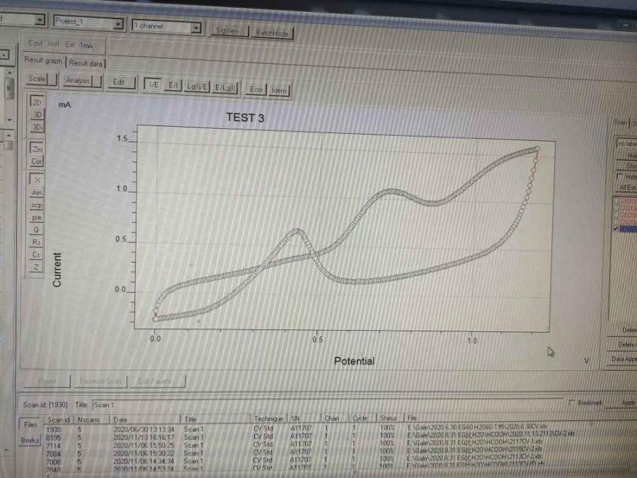 大体的走势是这样,正扫0.7v和1.2v各有一个氧化峰,负扫0.4v有一个峰(这个峰是叫氧化峰还是还原峰啊?)