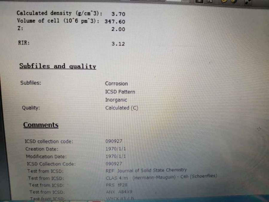 如题,求助JCPDS卡片01-070-4469