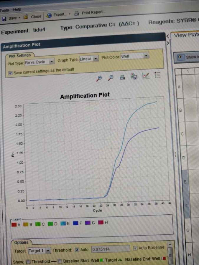PCR扩增曲线在上升趋势时突然拐弯(图1),并且稀释一万倍和一千倍ct值一样(图2)。 发自小木虫Android客户端 |