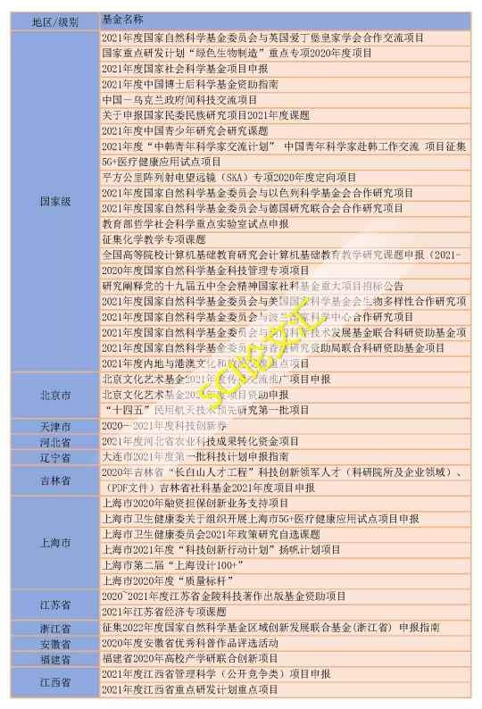 (基金快讯:80多项)2021-01-09全国各省市基金项目申报机会汇总