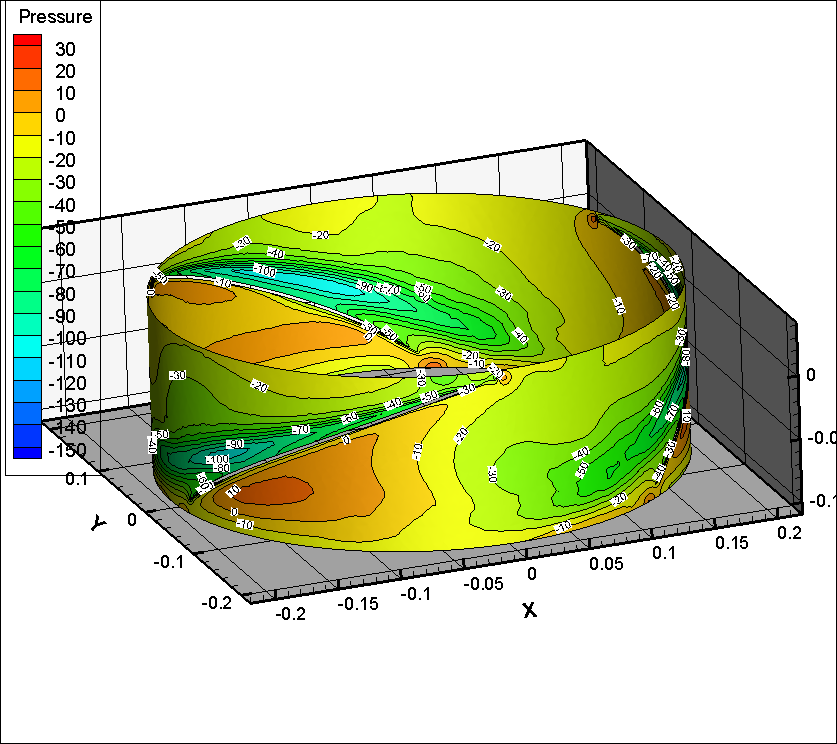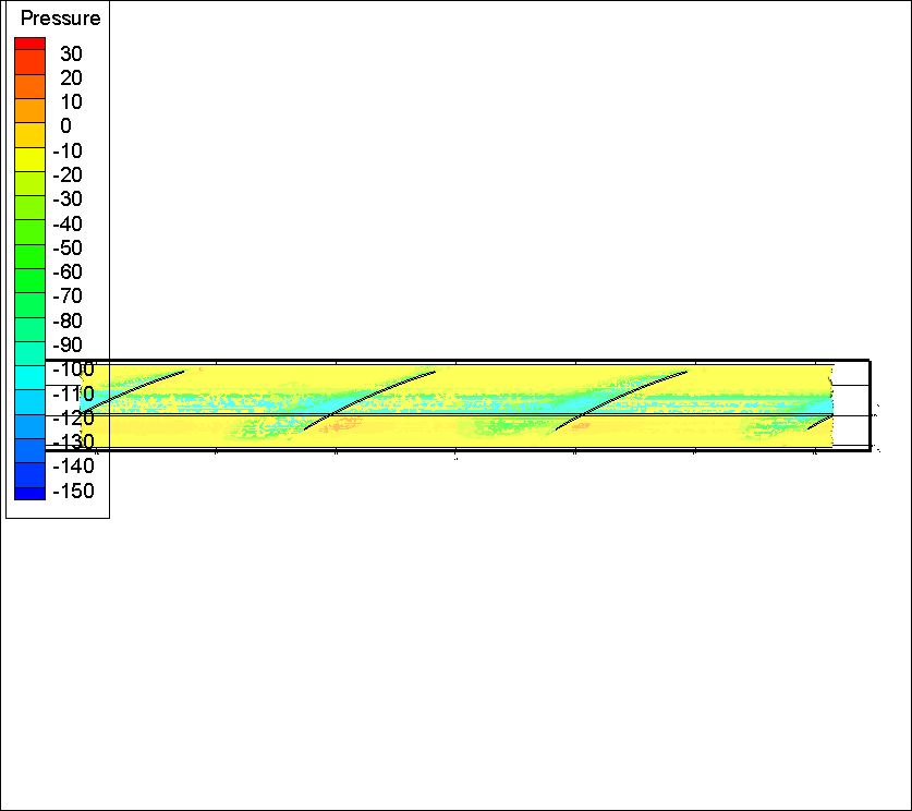 图3、4是通过坐标变化展开的样子,可以看到两侧边缘位置数据因为连续,导致它在整段上连接在一起,使得云图错位无法观察了。