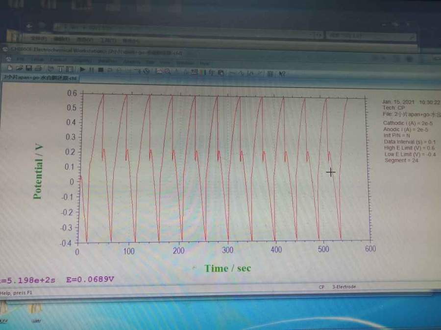 为什么我做的充放电曲线是这样的?做CV 的时候是正常的,而做充放电的时候就不对了,是为什么? 发自小木虫Android客户端 |