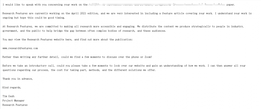各位虫友,今天收到Research Features的邮件(如下图所示),写一篇Feature article,不懂这个Feature article是啥,有没有必要写?哪位大神给解释一下,