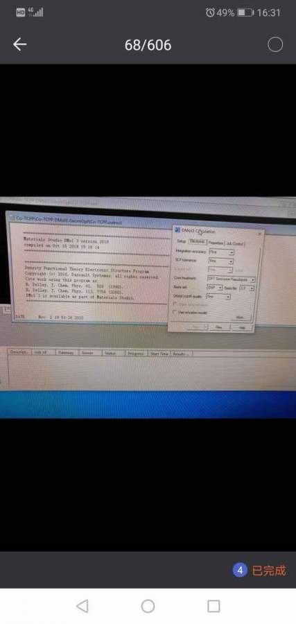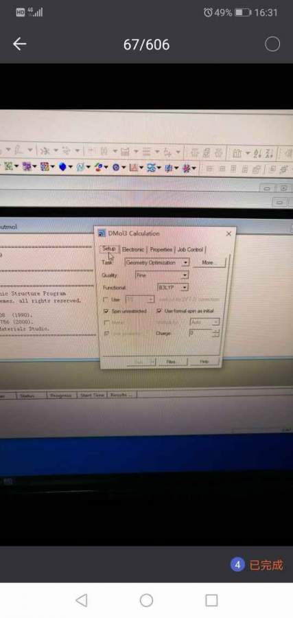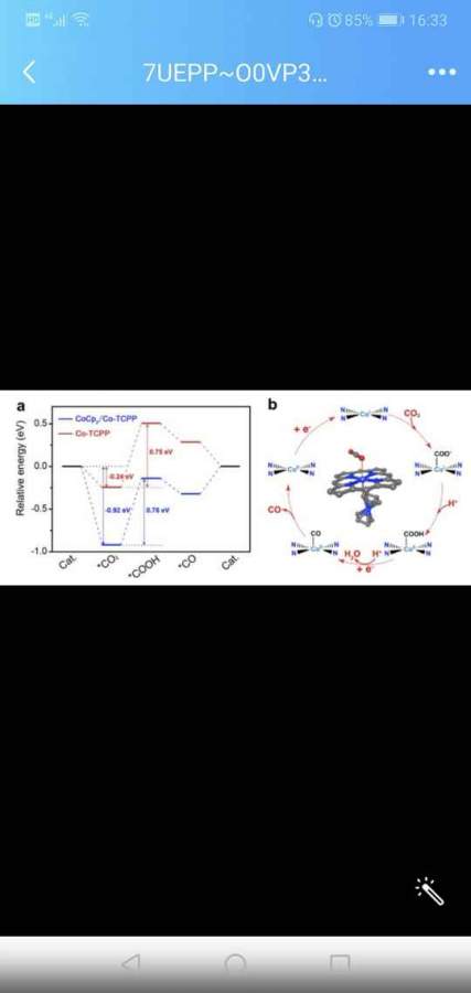 想用MS软件中的Dmol3模块计算金属卟啉将CO2还原成CO的过程,希望通过计算能得到如图1和2的图。图3为打算计算的结构与CO2 ? ?我所理解的是将各个过程的模型构建出来,然后在Dmol3模块进行几何优化,优化后输出文件中的能量即为结构模型的能量。一个过程计算如图4,但计算后是负值,而文献中报道的都是正值(图1和2)。想请教一下计算方向的朋友们: 1. 我理解的计算过程有问题吗?为什么会和文献计算的差异太大 2. 如果我想要得到如图1一样的图,应该怎么去计算? 图5和6是我的参数设置,金属中心分别是锰,钴,镍,锌,金属作为活性中心 发自小木虫Android客户端 |