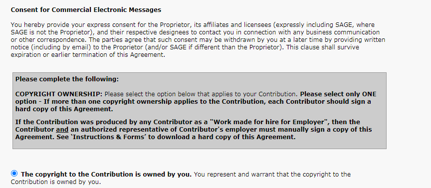 SAGE旗下的期刊投稿接受后要求填写一个JOURNAL CONTRIBUTOR'S PUBLISHING AGREEMENT 已有1人参与