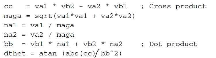 图中:va1和va2为二维向量a的两个分量,vb1和vb2为二维向量b的两个分量。 问题1. dthet的物理意义是什么,它是向量a和b的哪个夹角吗,是不是具有方向? 问题2. dthet这个公式是如何推导得出来的? 发自小木虫Android客户端 |