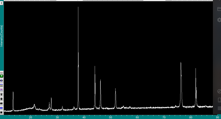 各位好: 本人做了一个反应,主要想想证明碘单质可以与镍金属反应形成NiI2或者Ni-I化合物。 我在LiF -BeF2熔盐中加了LiI和NiF ,500度反应,形成单质碘,单质碘挥发到镍箔上,然后将这个镍箔去测了XRD。测试结果见图片。 想问下是否有NiI2的信号?还有位于37.5和82左右的峰,可能属于什么物质呢?我找了好久也没找到。 谢谢各位! XRD.png |