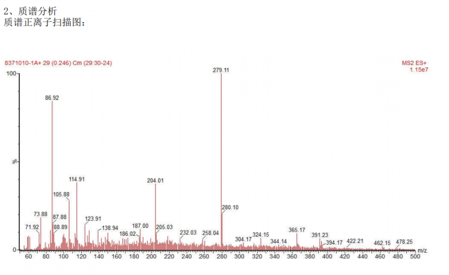 有一个质谱图求虫友帮忙分析一下有什么东西。