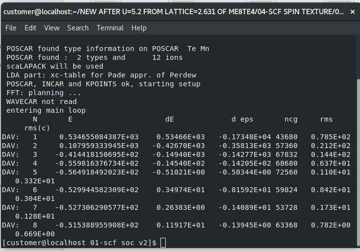 总是没有任何提示结束了。但是肯定不正确。因为CHGCAR为空。麻烦各位老师帮忙分析一下如题,其中KPOINTS使用python数据库生成的设置INCAR如下:#INCAR SYSTEM = Mn8Te4 final model +U=5.2 J=0 MAGMOM=4 FM SCF #START ISTART=0 ICHARG=2 # NO INPUT WAVE & CHARGE LWAVE = T LCHARG = T #OPT COMPUTING NCORE=4 NPAR=4 ENCUT = 550 PREC = A EDIFF = 1E-6 ISMEAR = 0 SIGMA = 0.05 #SPACE LREAL = F #CELL ISIF=2 ISPIN=2 NELM=200 ISYM = 0 VOSKOWN = 1 #IONIC NSW=0 IBRION=2 EDIFFG=-0.02 POTIM= 0.5 ALGO= Fast NEDOS=2021 LMAXMIX=4 LORBIT=11 LDAU=T LDAUTYPE=2 LDAUL=-1 2 LDAUU=0 5.2 LDAUJ=0 0 LASPH=T GGA_COMPAT=F SAXIS= 0 0 1 LSORBIT=T LNONCOLLINNER=T MAGMOM=0 0 0 0 0 0 0 0 0 0 0 0 4 0 0 4 0 0 4 0 0 4 0 0 4 0 0 4 0 0 4 0 0 4 0 0 发自小木虫Android客户端 |