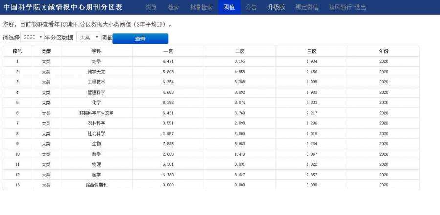 2020年中科院JCR分区基础版 各大类 阈值 已有1人参与