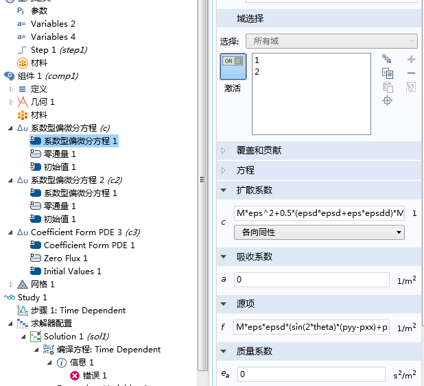 为什么在 comsol 中求解方程组 出现这么多错误提示?