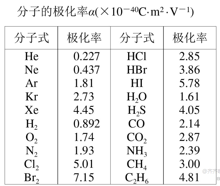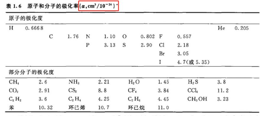 想找一下常见分子或溶剂的极化率,想求一下极化率表。