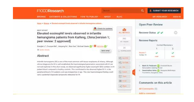 F1000 Research在2020年出版哪些亮眼的中国研究