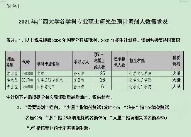 广西大学(B区211)化学、化工、化工专硕招大量调剂(官网已公布)