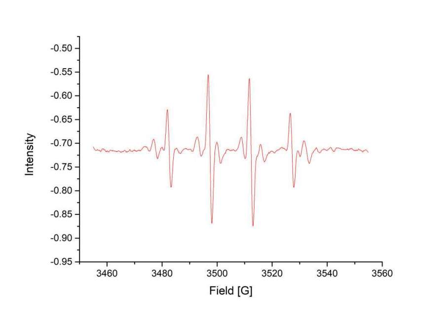 请问过氧自由基和超氧基的esr一般是几重峰啊?这是酸性水溶剂,有微量乙醇,采用的DMPO捕获剂,就下面这张图除了羟基自由基的四重峰,还有六个小的峰,应该是什么自由基啊?求大神指导! 发自小木虫Android客户端 |