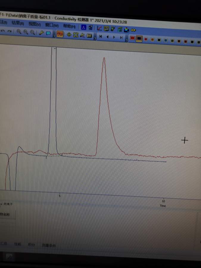 使用塞卡姆离子色谱分析氯化胆碱,淋洗液15.4mmol/L甲磺酸,柱子是250mm×4.0mm(i. d.)Dionex IonPac CS12A阳离子分析柱,跑出的峰略微拖尾,图上蓝色峰为钠离子,红色大峰为胆碱离子。请问大神们如何解决这种拖尾问题? 111.jpg |